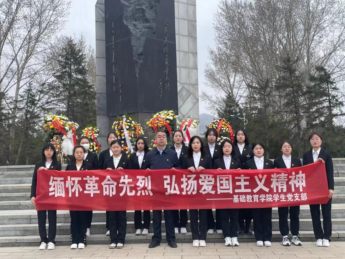 为进一步弘扬英烈精神,传承红色基因,赓续红色血脉,基础教育学院学生党支部于4月4日上午赴内蒙古革命烈士陵园开展了“缅怀革命先烈、弘扬爱国主义精神”清明节主题党日活动。学生党支部书记胡宝泉、14党员及入党积极分子代表参加了此次活动。