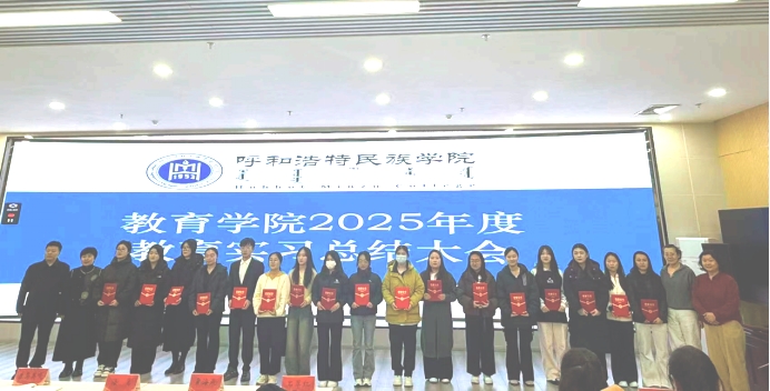 2025年11月12日中午13:00,教育学院在北图书馆一楼报告厅召开2025届实习总结表彰大会。会议由小学教育实践教研室主任王玉霞主持。学院副院长朱乌英嘎、实习指导教师、学前教育与小学教育专业2022级本科及2024级专升本全体实习生共同参会。