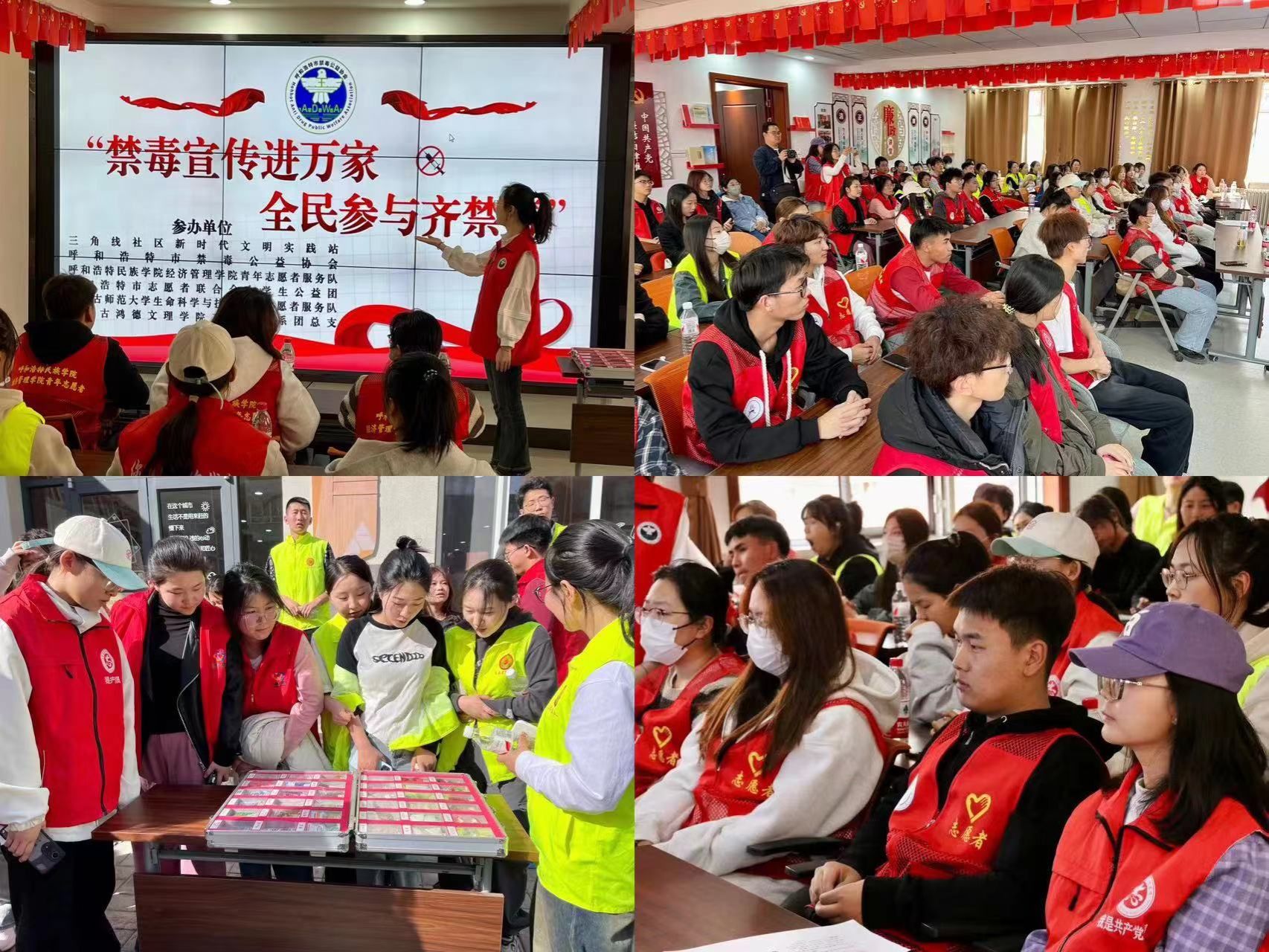 为贯彻学校铸牢中华民族共同体意识“23456”工程,积极践行学校进社区等“六进”工程,深化高校禁毒宣传教育,提高在校大学生群体的禁毒意识和法治意识,3月22日,由Beat365唯一官方网站经济管理学院团总支主办,三角线社区、呼和浩特市禁毒公益协会、呼和浩特市志愿者联合会大学生公益团、内蒙古师范大学生科院志愿者服务队、内蒙古鸿德文理学院工程管理系团总支联合开展的“禁毒宣传进万家,全民参与齐禁毒”主题活动在三角线社区成功举办。