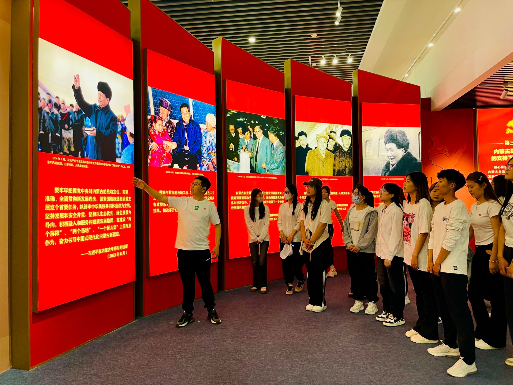 为深入贯彻落实习近平总书记对内蒙古的重要指示精神,把习近平总书记的重要指示转化为聚力落实五大任务、全方位建设模范自治区两件大事的强劲动力,扎实开展党纪学习教育,推动党纪学习教育走深走实,5月22日,经济管理学院师生走进内蒙古展览馆观看主题展览,开展“牢记嘱托 感恩奋进 凝心聚力 办好两件大事”主题党日活动。我院学生党员、团员270余人参加此次党日活动。由学院团总支书记华国庆老师带队。