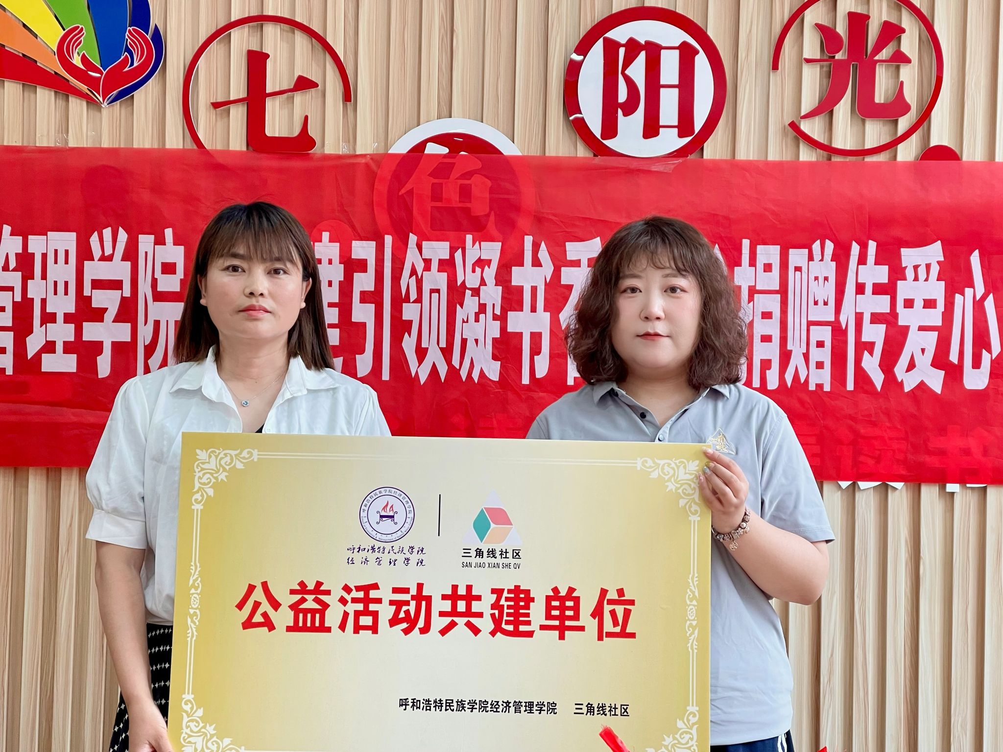 其次学院党总支副书记李云向三角线社区颁授公益共建单位牌匾。