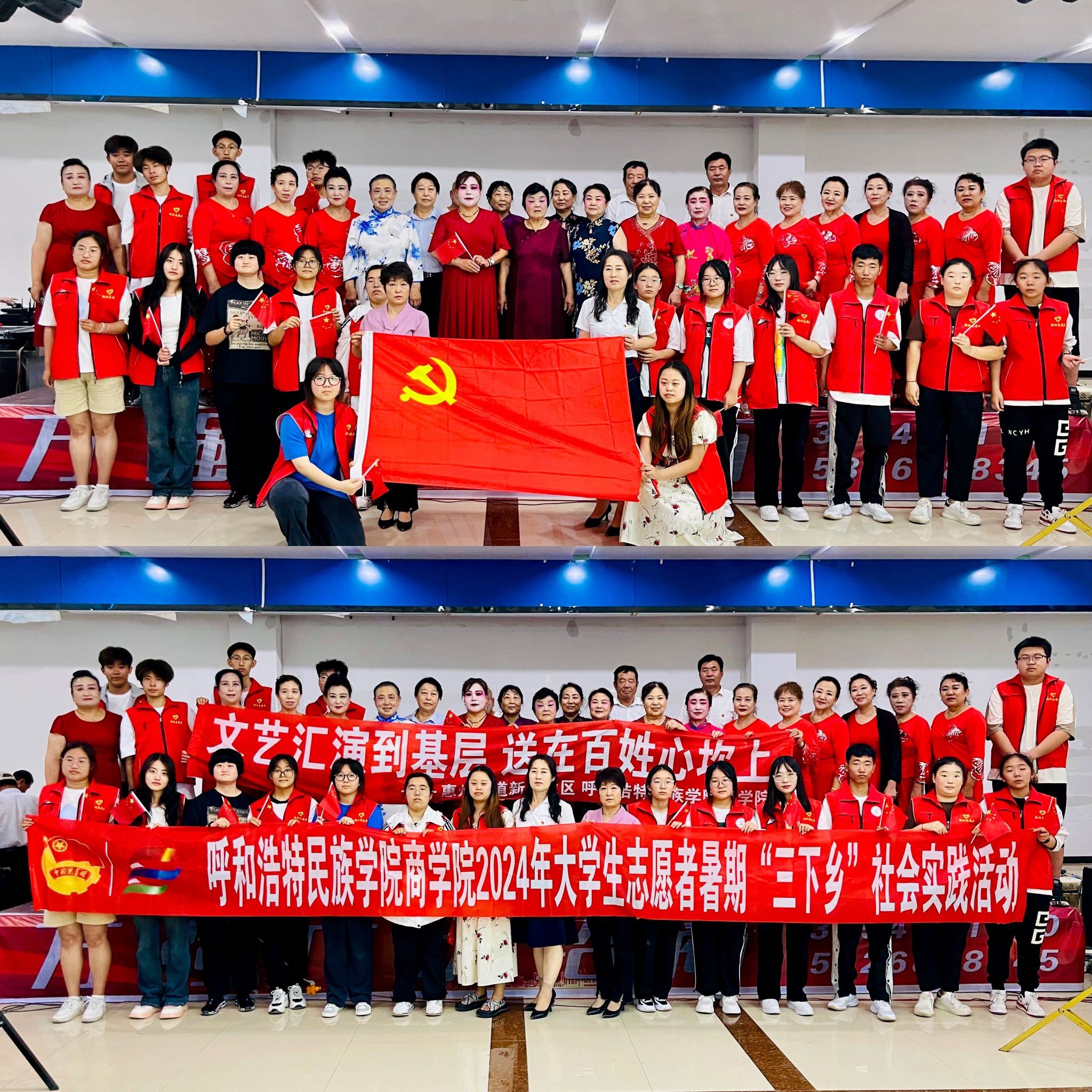 为深入贯彻落实党的二十大精神,学习贯彻习近平文化思想和重要指示精神,加快建设新时代文化强市,建设宜居宜业和美乡村,满足广大农民日益增长的美好生活需要。近日,商学院2024年暑期“三下乡”实践团联合赤峰市敖汉旗新园社区乌兰牧骑走进基层献上一场精彩的文艺惠民演出,与大家携手共同庆祝建党的103周年。