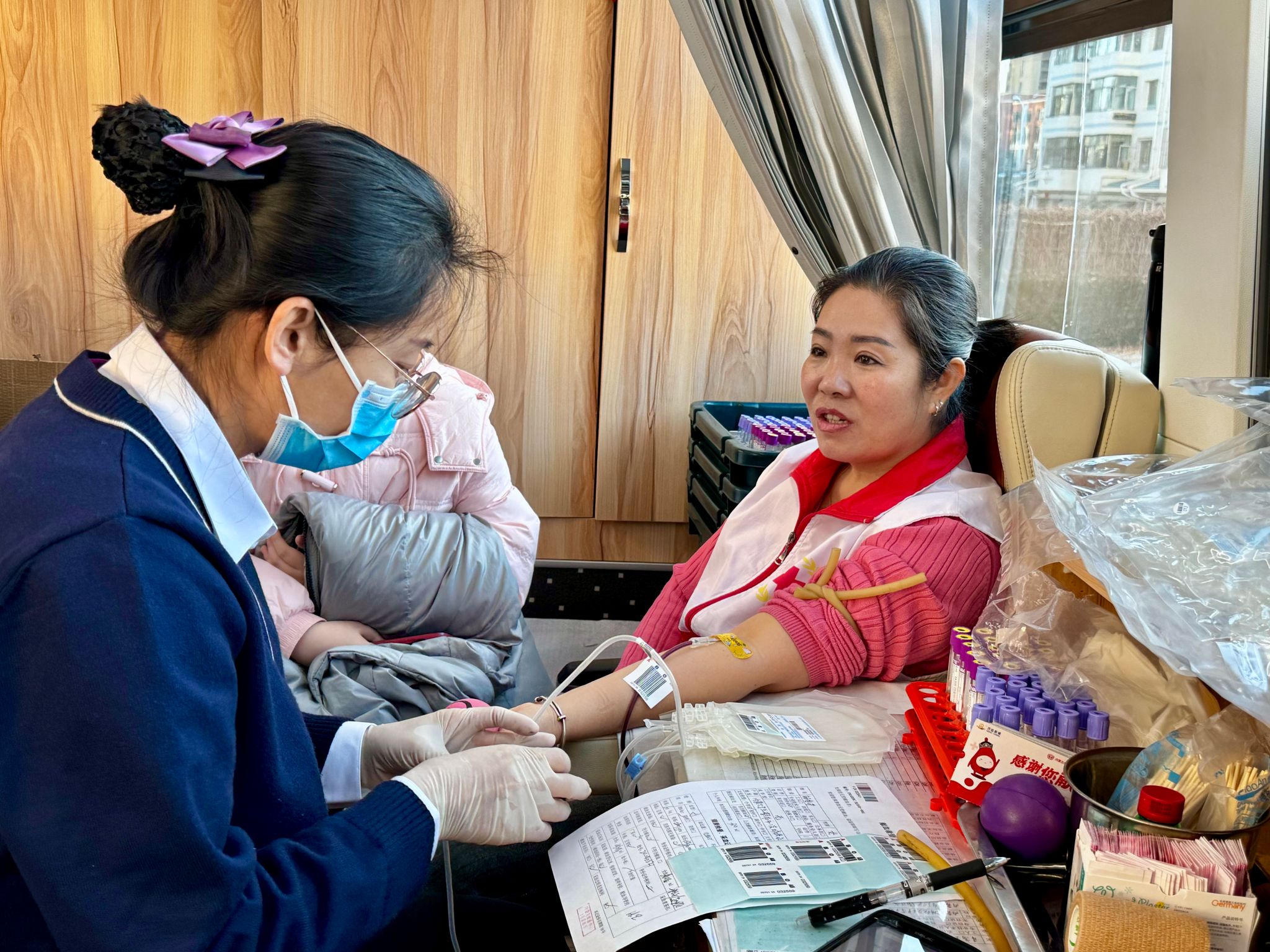 活动现场,志愿者帮助献血者排队登记、体检。各高校青年志愿者伸出手臂献血,一袋袋爱心的血液奔赴需要的地方,为那些在病痛中挣扎的患者点亮生命的曙光。