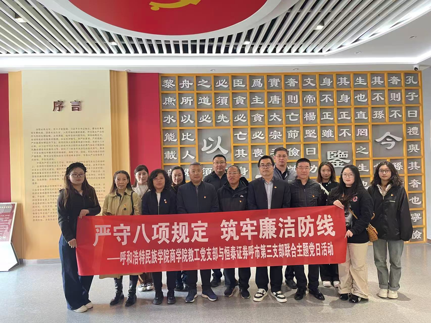 此次联合主题党日活动,不仅加强了商学院教工党支部与恒泰证券呼市第三支部之间的交流与合作,更为双方党员上了一堂生动的廉政教育课,为持续深化党风廉政建设,营造风清气正的政治生态和工作环境奠定了坚实基础。