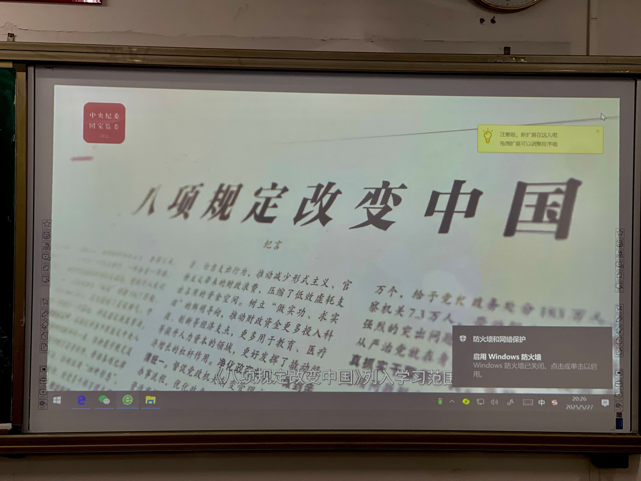 观看结束后,大家纷纷表示,要以身作则,严格遵守中央八项规定,将纪律意识真正内化于心、外化于行,以实际行动为同学们树立榜样。在今后的学习、生活和工作中,要时刻保持警醒,自觉抵制各种不良风气的侵蚀,为营造风清气正的校园环境和社会氛围贡献自己的力量。