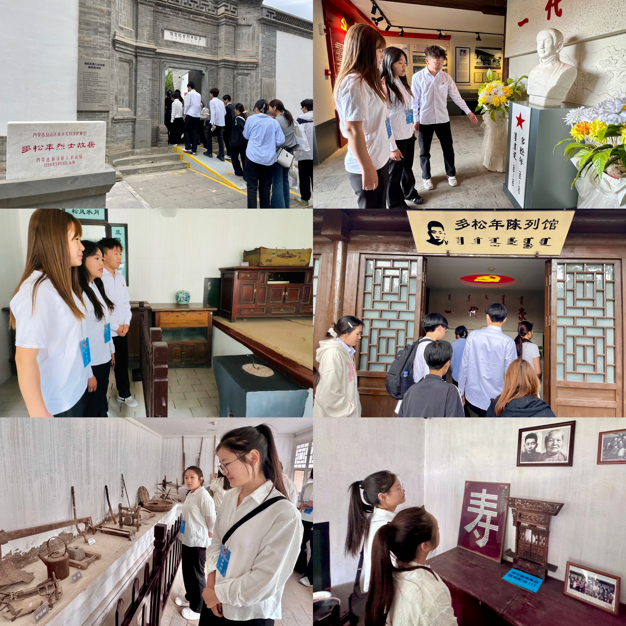 多松年烈士纪念馆庄严肃穆,在纪念馆前,学生党员整齐列队集体合影。随后,党员们跟随讲解员的步伐,走进纪念馆内。馆内烈士遗物、珍贵手稿、纪实图片展现了多松年烈士光辉而短暂的一生。