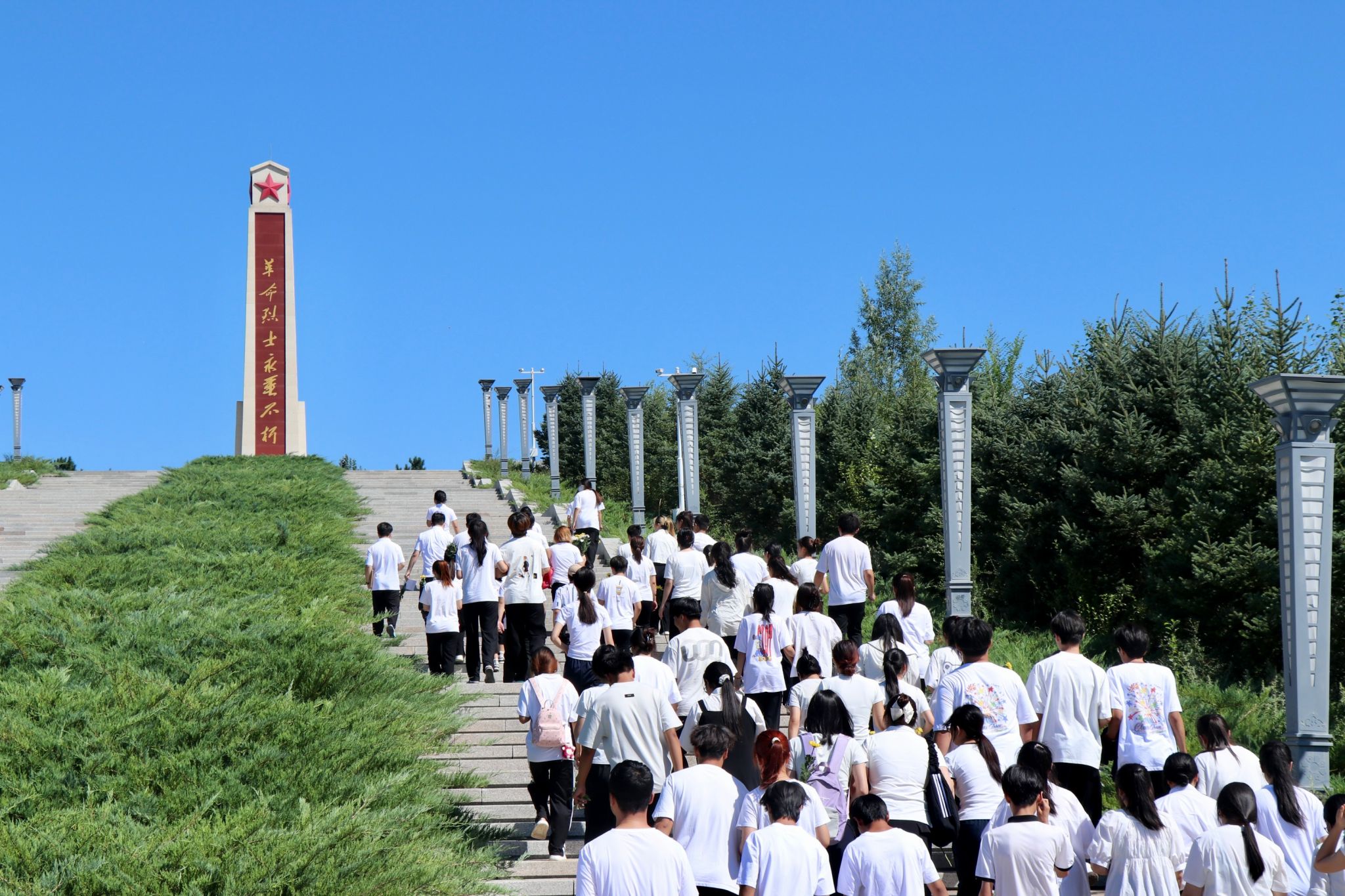 为纪念中国人民抗日战争暨世界反法西斯战争胜利80周年,教育引导青年志愿者传承伟大抗战精神,铭记历史、奋发图强。近日商学院“筑梦北疆红色之旅”志愿服务队联合敖汉青年志愿者服务队走进敖汉旗新惠革命烈士陵园,开展“弘扬抗战精神 赓续红色基因”主题团日活动,深切缅怀为民族独立和人民解放英勇献身的革命先烈。