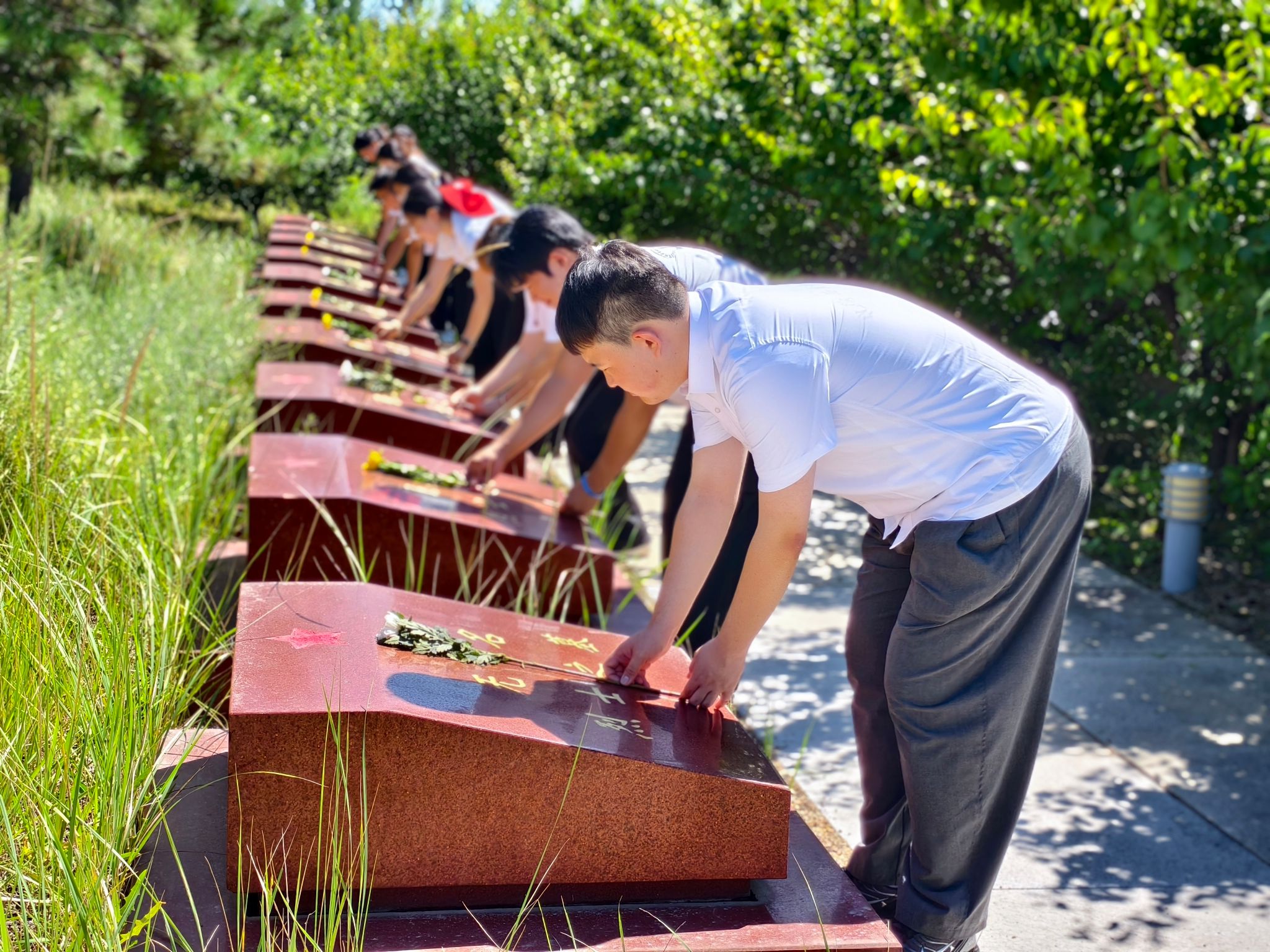 活动第三项,全体人员向烈士纪念碑行三鞠躬礼。一鞠躬感恩先烈浴血奋战换来山河无恙;再鞠躬致敬英雄以热血铸就忠魂、谱写民族壮歌;三鞠躬铭记历史使命,立誓以青春之力传承精神火炬。