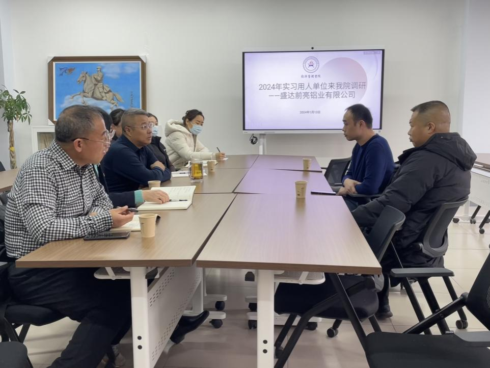 进一步了解我院人才培养模式和专业特色,以建立更紧密的校企合作关系,2024年1月13日下午,盛达前亮铝业有限公司法定代表人彭松等人一行莅临我院展开调研,学院领导班子、毕业班班主任以及辅导员参加调研会