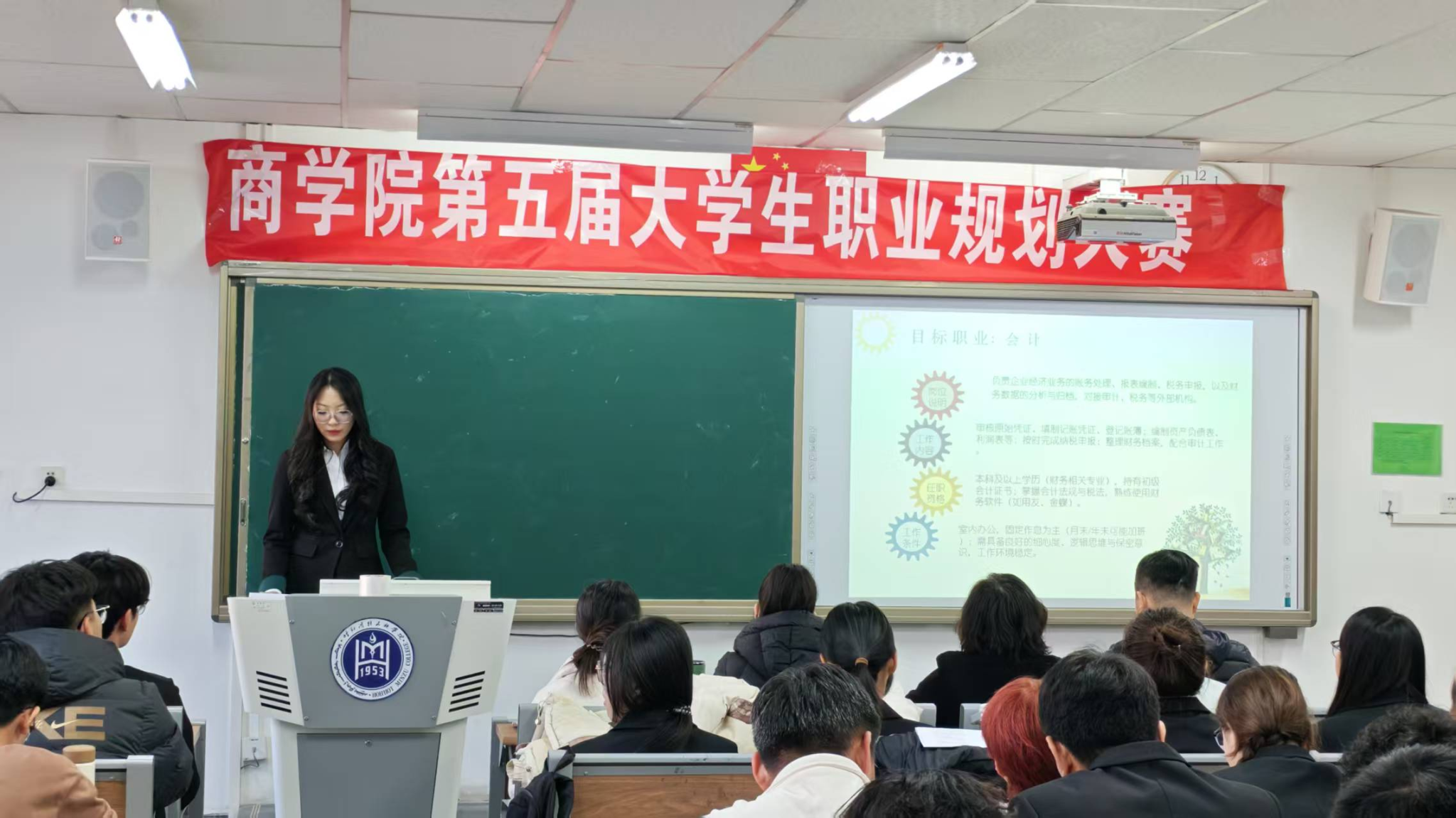 为帮助学生树立科学职业观,提升就业竞争力,2025年11月20日,商学院成功举办了第五届大学生职业规划大赛。本次大赛以 “筑梦青春志在四方,规划启航职引未来”为主题,吸引全院各年级数百名学生报名参与,最终经过学院初步筛选出15名学生参与初赛。