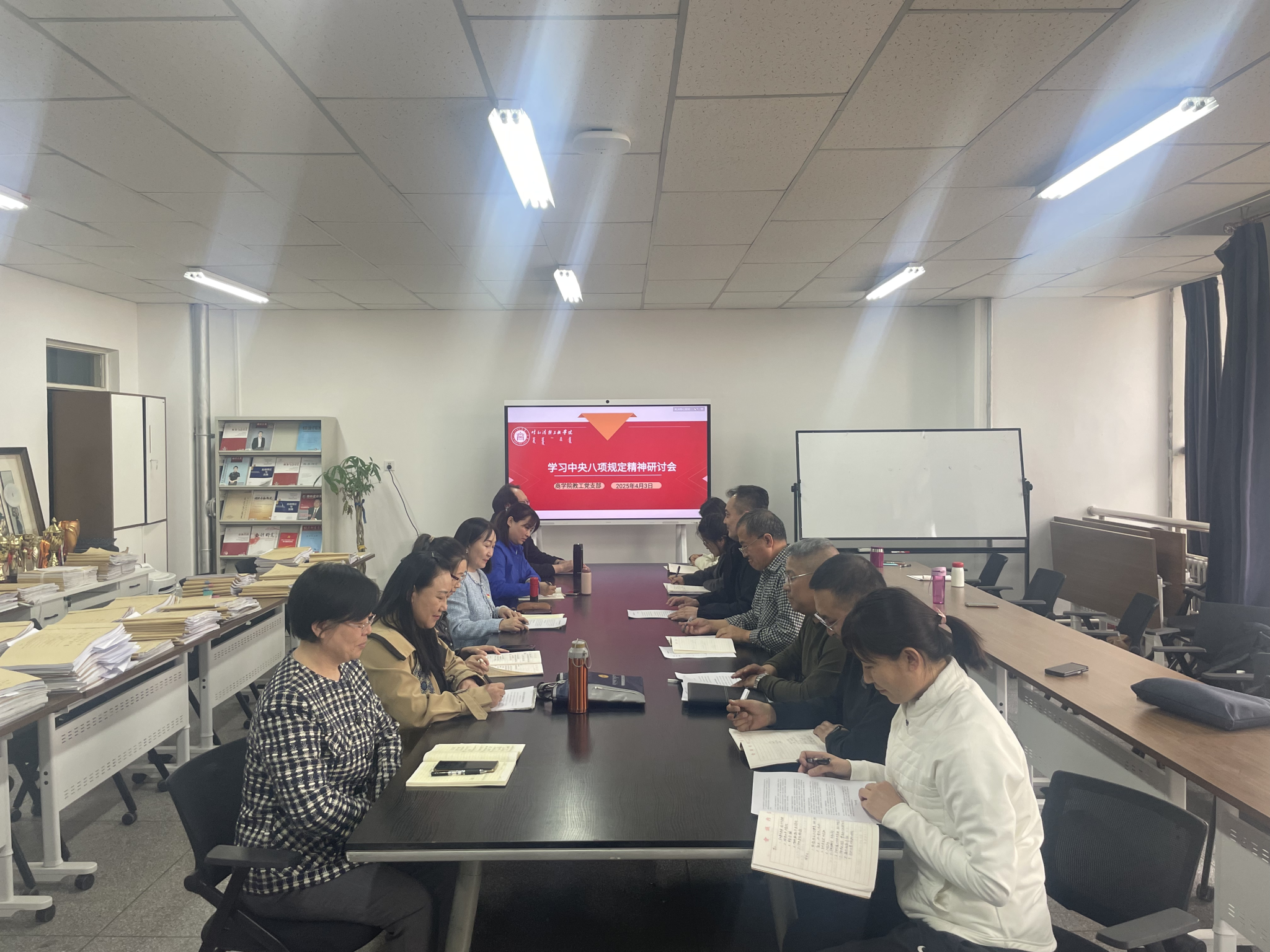 2025年4月3日14时30分,商学院教工党支部310会议室召开了一场以“学习中央八项规定精神,结合专业教学实际交流研讨”为主题的重要会议。本次会议由商学院教工党支部书记新华主持,全体党员教师参加。