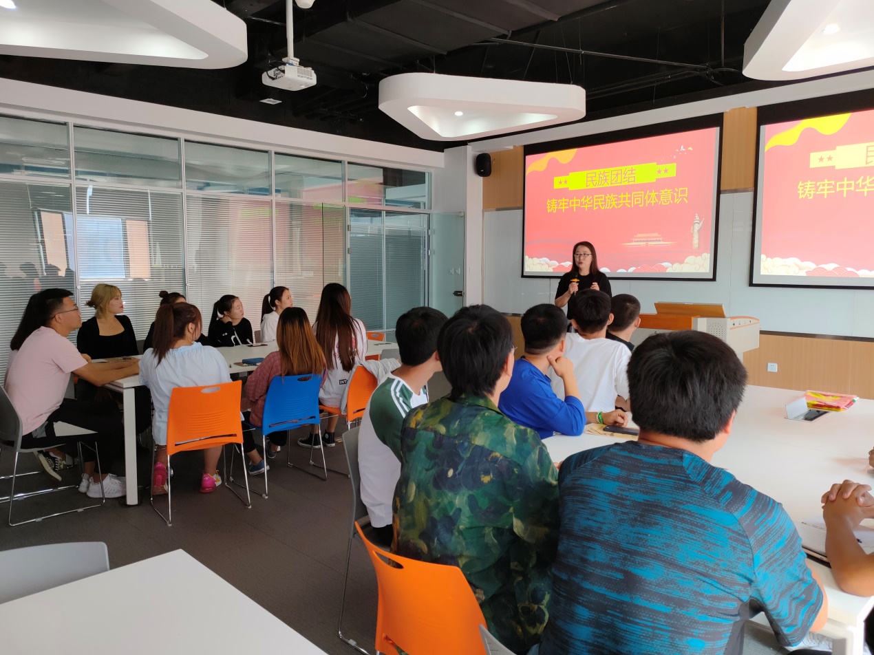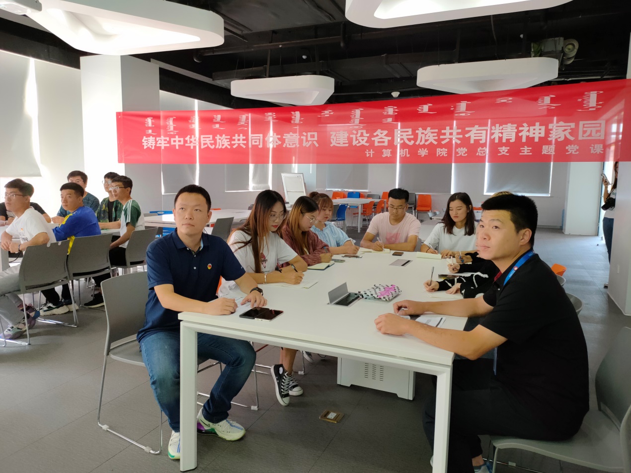 一次党课。计算机学院党总支书记给企业党员职工和在基地实习实训的学生党员、发展对象上了一堂民族团结主题党课。