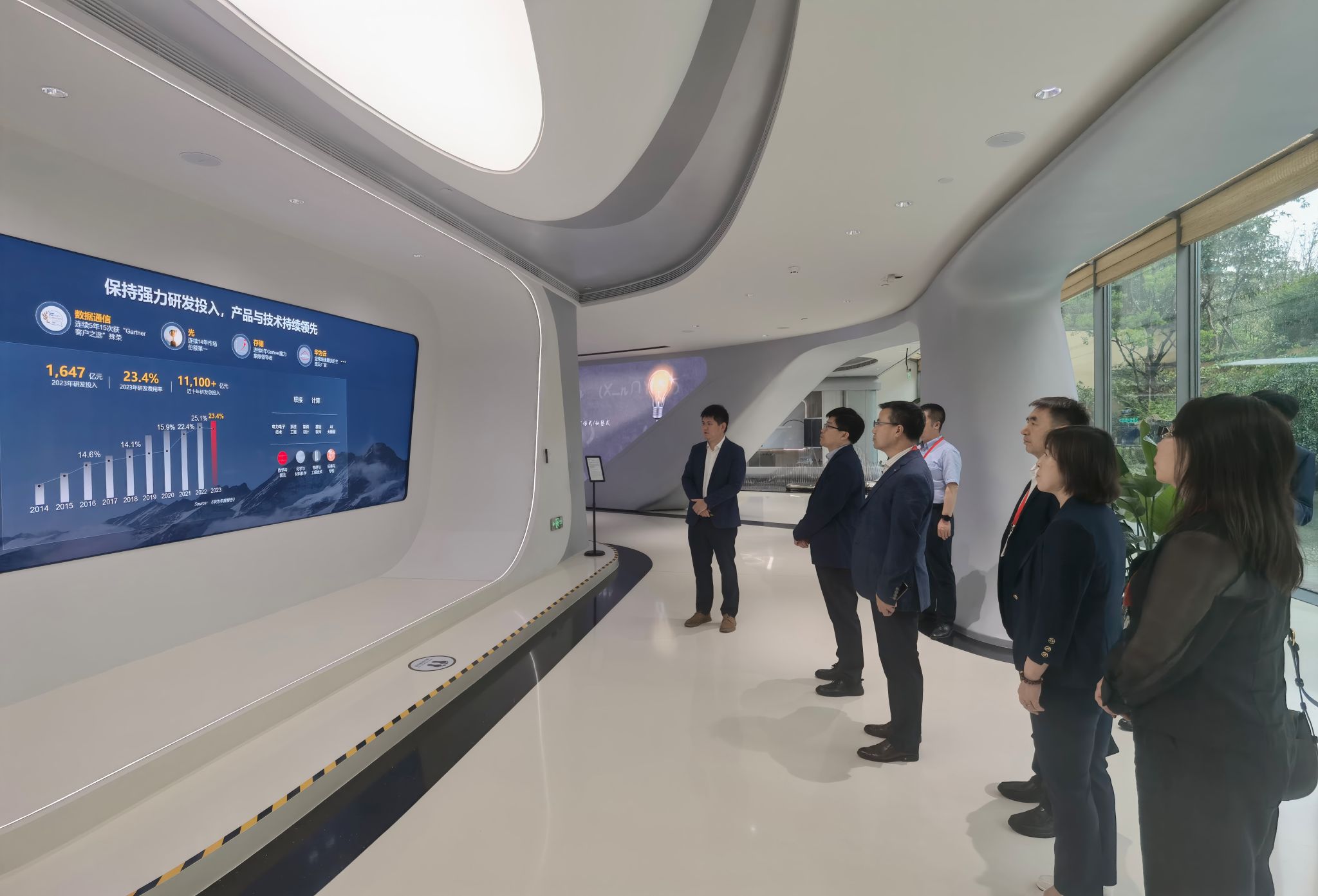 调研组一行先后到华为总部松山湖基地、华为大学所在地三丫坡培训基地和华为公司的全球总部坂田基地进行了学习调研。