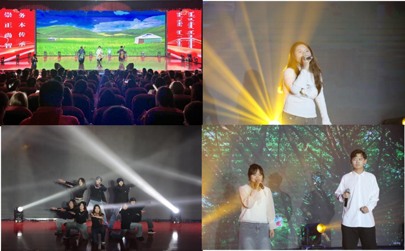 校党委委员、纪委书记、监察专员王冬梅,党委委员、统战部部长朝格吉勒图,党政办公室副主任李海军出席晚会现场,两个学院班子成员、团总支书记、辅导员、教师和2024级全体新生以及其他年级学生共600余人观看演出。