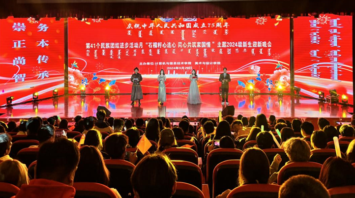 金秋送爽,丹桂飘香。为热烈庆祝中华人民共和国成立75周年,深入开展学校第41个民族团结进步月活动,9月29日晚,计算机与信息技术学院和美术与设计学院在北院图书馆二楼报告厅联合举办了“石榴籽心连心 同心共筑家国情”为主题的2024级新生迎新晚会。