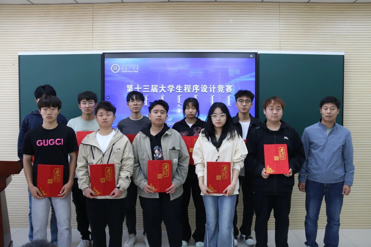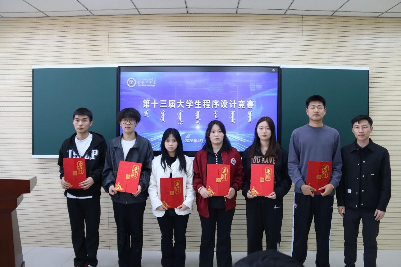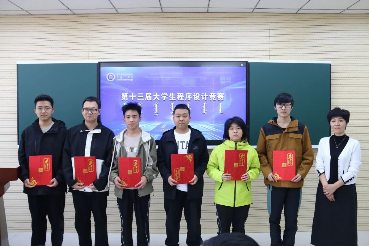 当日中午,我院副院长色登丹巴 、计算机科学教研室主任温斯琴、教学科研办公室主任春风、团总支书记包巴雅力格为获奖同学们进行颁奖。