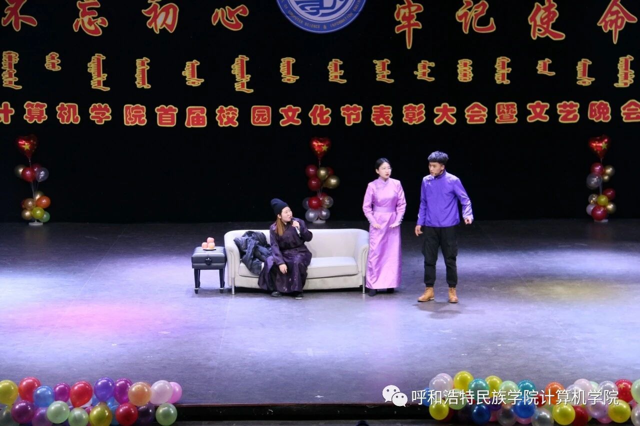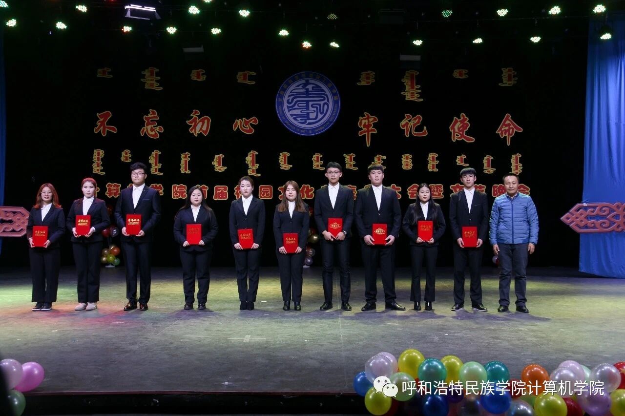 为深入贯彻习近平新时代中国特色社会主义思想,扎实推进“不忘初心,牢记使命”主题教育,促进民族团结繁荣发展,营造良好的育人环境,计算机学院于2019年10月22日—11月25日举办了为期1个月的首届“不忘初心,牢记使命”校园文化节,期间开展了党团知识竞赛、演讲、书法、绘画、棋类比赛等系列活动。12月4日,在学校演播厅隆重召开了本届校园文化节的颁奖典礼暨文艺晚会。