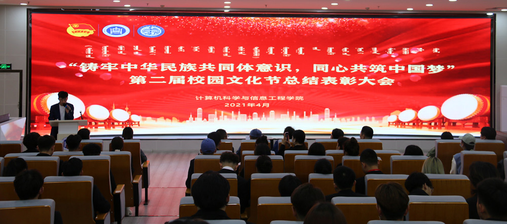 2021年4月28日,计算机学院在图书馆一楼组织召开“铸牢中华民族共同体意识,同心共筑中国梦”第二届校园文化节表彰大会暨“高举民族团结旗帜,‘学党史、强信念、跟党走’”学习教育活动部署会,我院党总支书记、院长、教学科研办公室主任、专职辅导员、部分班主任代表、校企合作企业代表、班长、团支书、学生会全体成员、获奖人员代表参加本次会议,会议在全体人员高唱《国歌》中拉开帷幕。