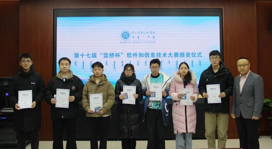 12月23日中午,在综合楼11楼会议室举行颁奖仪式,智能科学学院副院长哈斯、计算机与信息技术学院副院长色登丹巴、澈力木格老师作为颁奖嘉宾为获奖同学颁奖。