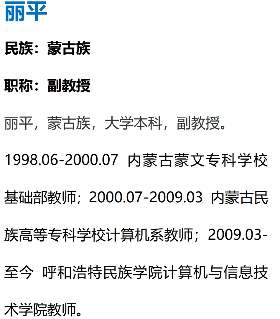 独立完成专业、教学改革论文12篇。分别发表在《内蒙古社会科学》、《内蒙古师范大学学报》、《内蒙古民族大学学报》、《蒙古学研究》、《呼伦贝尔学院学报》等刊物。
