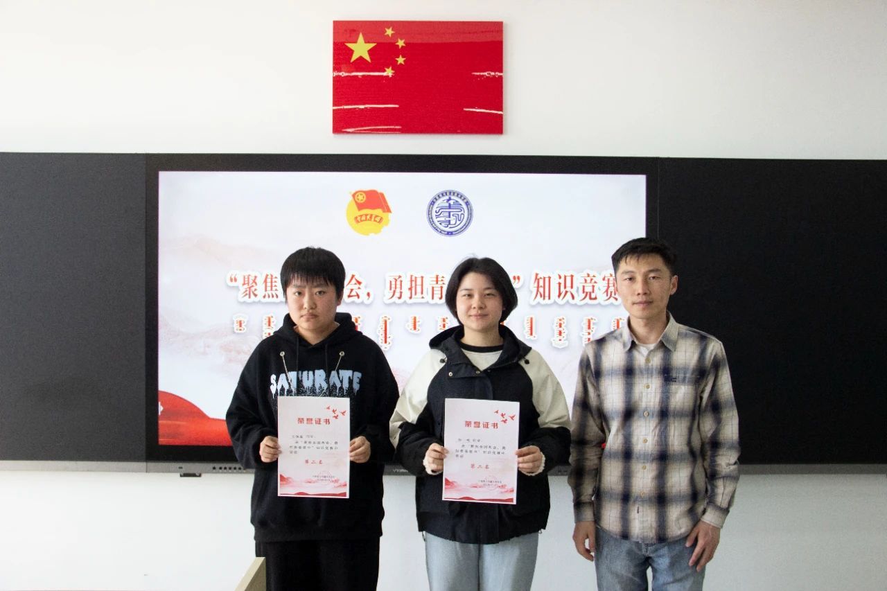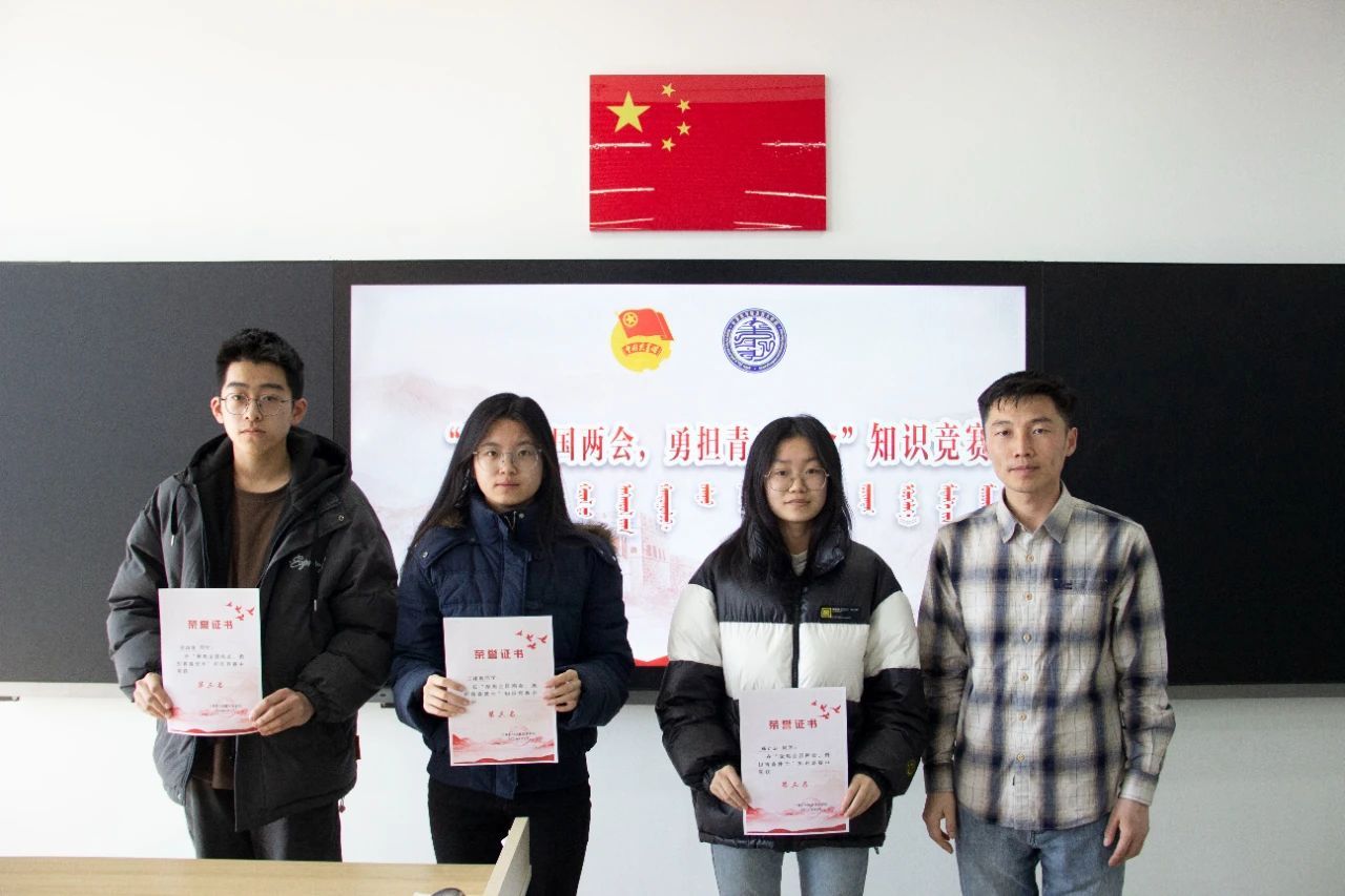 本次竞赛紧扣全国“两会”主题,围绕2025年全国两会热点展开,内容涵盖了全国“两会”的基本常识及政府报告、各国家机关显著成就与民生政策等核心议题,采用闭卷考试。我院团总支书记包巴雅力格、办公室副主任杨恒毅作为颁奖嘉宾为获奖同学颁奖。