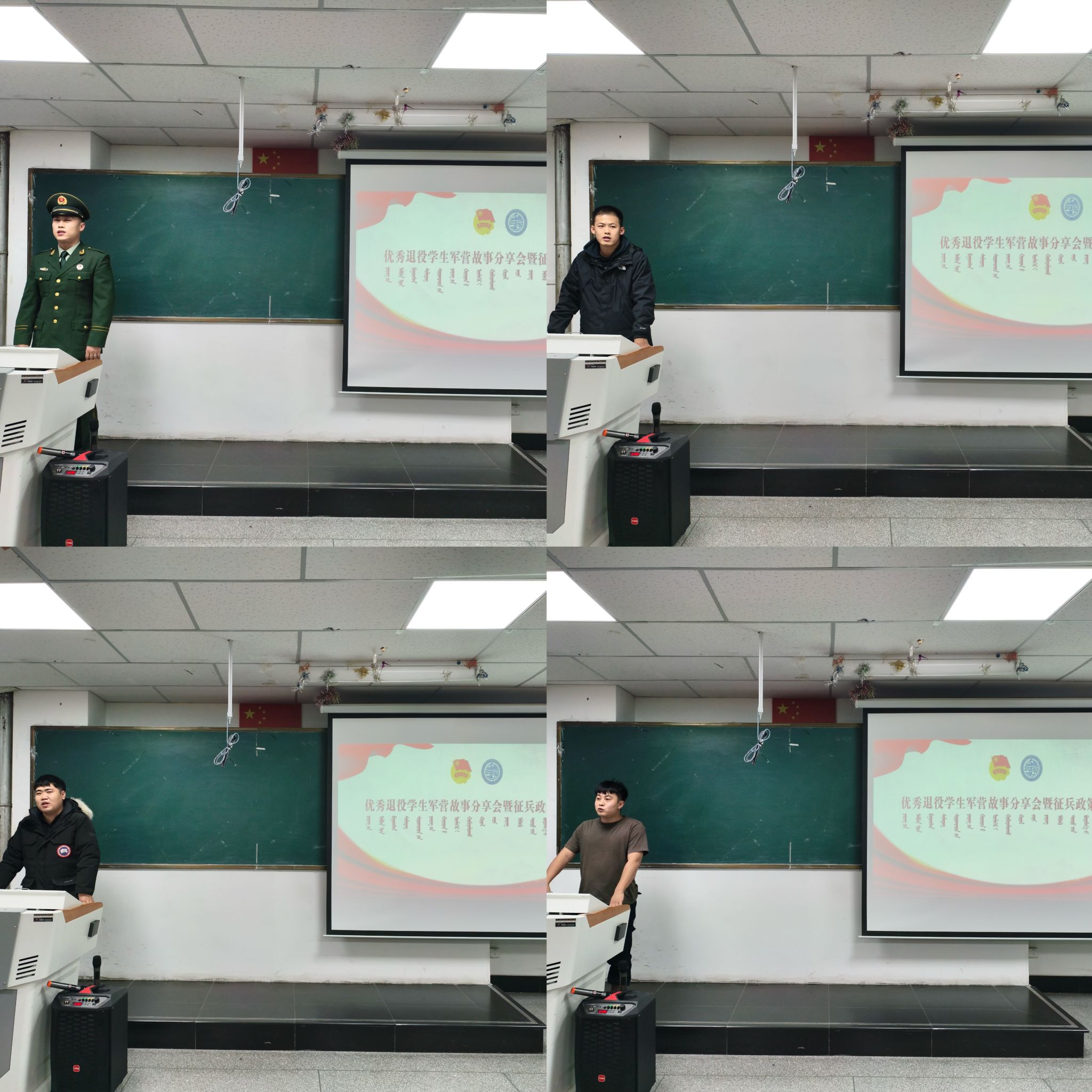 为加强国防教育,激励同学们心怀家国梦想,增强大学生强国强军责任担当,2024年11月21日晚,我院举办“一站式”学生社区优秀退役学生军营故事分享会。本次活动邀请了退役复学学生徐鑫龙、马煜博、王文跻、徐鑫同学主讲,他们从自己的军旅生活出发,为有应征入伍意向的同学们讲述了在军营的成长经历和感悟。他们表示,军旅生涯锻炼了他们的意志。深情地回忆了在部队的训练、生活点滴,以及战友之间的深厚情谊。