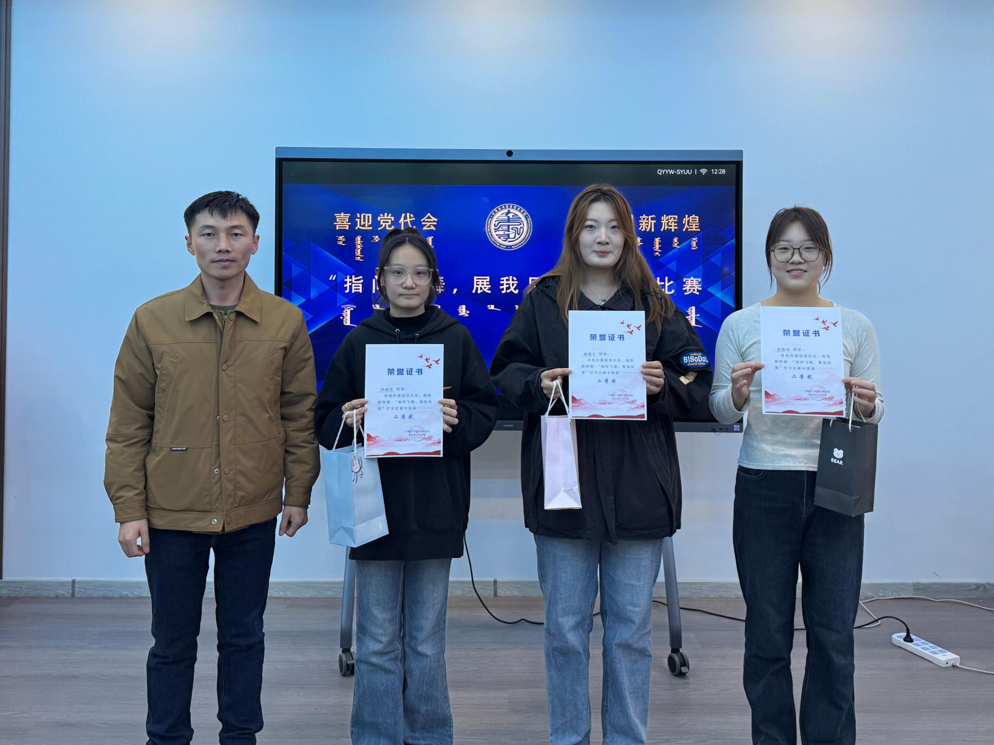 11月19日中午,我院党总支书记王水英、团总支书记包巴雅力格、辅导员云磊作为颁奖嘉宾为获奖同学颁奖。