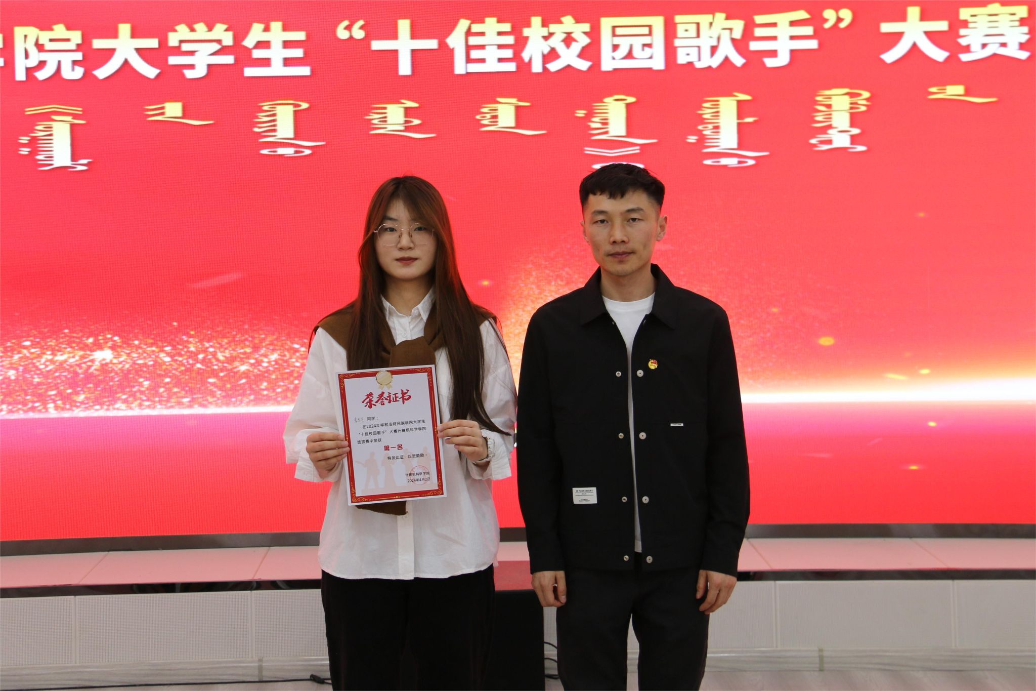 为获得一等奖选手进行颁奖