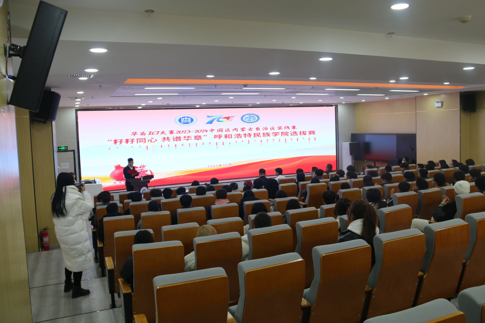 2023年11月24日下午,华为ICT大赛2023-2024中国区内蒙古自治区实践赛—“籽籽同心,共谱华章”Beat365唯一官方网站选拔赛启动仪式在北院图书馆一楼报告厅举行。