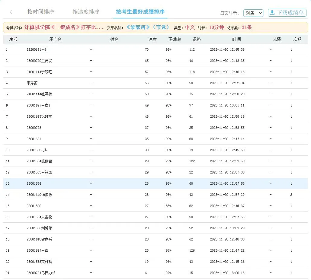 比赛成绩单