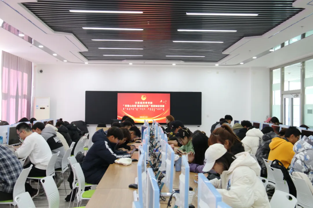 为深入学习宣传贯彻习近平新时代中国特色社会主义思想和党的二十大精神,带领广大团员青年深入学习了解中国共产党和中国共产主义青年团的光荣历史,激励新时代共青团员牢记自身的责任与使命,向着第二个百年奋斗目标奋勇前进,为实现中华民族伟大复兴的中国梦注入新时代青年的青春力量,我院于11月14日在综合楼909教室,组织开展“青春心向党,奋进新征程”党团知识竞赛。