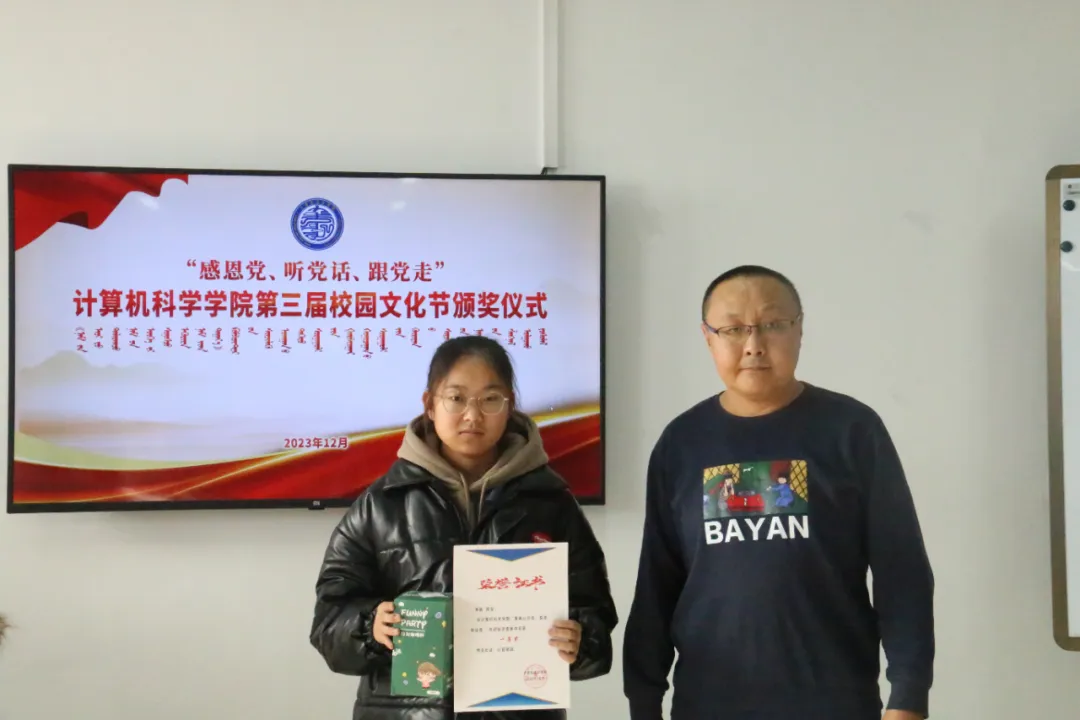 学院党总支副书记色登丹巴为获得一等奖人员颁奖