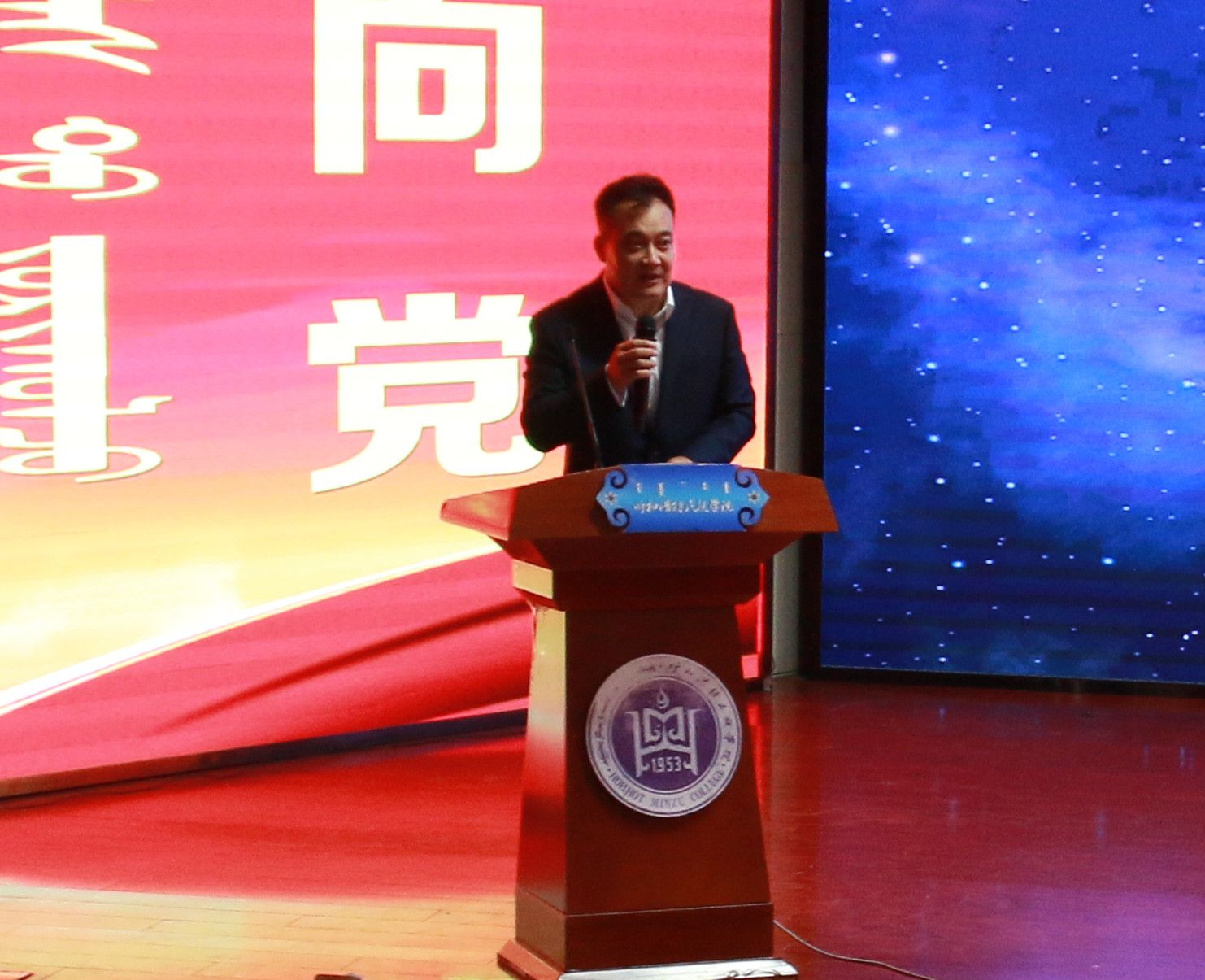 党总支副书记赛希雅拉图为大一新生介绍了我们学校与我们学院的相关情况,并对大一新生的到来表示了热烈的欢迎,表达了自己对大一新生的美好祝愿和殷切期盼,激励大一新生奋发图强,勇于争优。