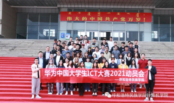 活动结束前,董飞老师提醒各位同学本次ICT大赛报名将于9月30日截止,希望各位同学能积极地投入到竞赛中,并祝愿大家能在比赛中取得佳绩。活动最后,冯培禄教授邀请博赛网络-内蒙古分公司参会领导与各位同学合影留念,预祝此次华为中国大学生ICT大赛2021实践赛圆满成功!