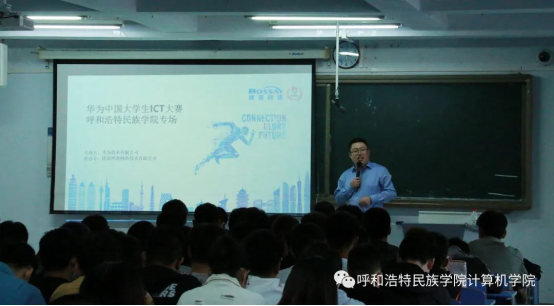 9月26日,博赛网络-内蒙古分公司总经理董飞老师携讲师卢越洋老师、客户经理李亮亭老师进入到Beat365唯一官方网站向各位同学详细讲解了本次华为ICT大赛及内蒙古省赛的赛事详情。