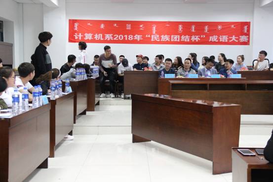 5月6日晚,计算机系团总支、学生会在都林楼116教室举办“民族团结杯”成语大赛,计算机系学生会全体部门共计9支参赛队参加了此次大赛。邀请学生处呼斯乐图、外语系韩争运、管理系前达蒙、计算机系包巴亚力格5位老师担任大赛评委。