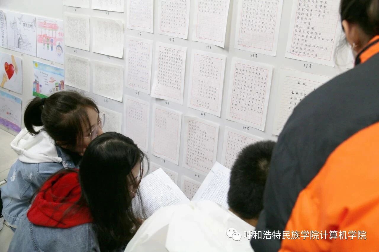 活动是由宣传部举办的书法比赛,双创文化部举办的绘画比赛,书法比赛分为软笔和硬笔。两项比赛均以展板的形式展出,由我院各班负责人投票决出。最终,书法比赛共41人参加,硬笔类第一名是19云计算一班高宇婷,第二名19信息管理与信息系统谢春兰、19数据科学与大数据技术植慧莹,第三名为19信息管理与信息系统娇娇、乌日力格,19计算机科学与技术二班姜珊。软笔类第一名是18科学与大数据技术班高世龙,第二名17信息管理与信息系统苏伦嘎。绘画比赛共10人参加,第一名为计算机科学与技术一班特日格勒,第二名19云计算二班刘颖、沃米琪,第三名19计算机科学与技术一班查日苏,17科学与技术Y班董阿那日,19信息管理与信息系统班席布和。