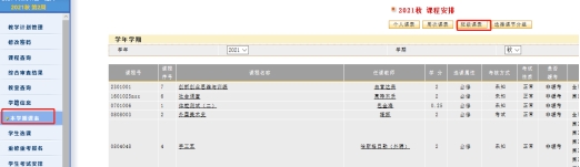4.实践类课程不显示在班级课表中,在按照班级课表选课完成之后,再次打开个人教学计划(图1)查看并选择实践模块的课程。