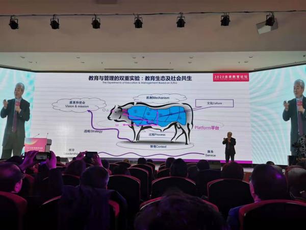 2020年未来教育论坛上全国人大常委会原副委员长、全国政协原副主席韩启德院士和北京大学常务副校长龚旗煌院士大会开幕致辞,全国100多所高校以及300多人参加了此次会议。本次大会全球化新技术背景下的高等教育、博雅教育的融合与发展、产业经济与工程教育的互动和教育创新推动社会进步等四个板块组成。第一板块报告中北京大学原校长、北京大学未来教育管理研究中心创始主任林建华教授、浙江大学校长吴朝晖院士和欧林工学院创世校长理查德·米勒院士分别作了主题为“今天的教育决定国家未来”、“建设双一流大学的浙大实践分享”和“重塑21世纪工程教育”的报告;第二板块报告中华中科技大学李培根院士、上海纽约大学执行校长杰弗瑞·雷蒙和北大国际关系学院院长唐士其教授分别作了主题为“教育要因应人的存在形式之改变”、“更新博雅教育”、“通识教育与专业教育的关系”的报告;第三版块报告中华南理工大学校长高松院士、中国上市公司协会宋志平会长、哈维穆德玛丽亚·克拉维校长、重庆大学张宗益校长、天津大学顾佩华院士和首都医科大学饶毅校长分别作了主题为“华南理工的产业领袖培养”、“我的企业管理教育历程”、“通过包容性教育法和课程增加工程学的多样性”、“重庆—辛辛提大学联合项目的实践分”、“新工业革命与新工科教育机遇与挑战”和“‘新医科’背景下高等医学教育”的报告;第四板块由报告中故宫博物院王旭东院长、新加坡国立大学梁惠思教务长、北京元培学院李猛院长、西交利物浦大学席酉民校长和厦门大学教师发展中心邬大光主任分别作了“当紫禁城遇到敦煌”、“新国大的观点:工作和大学教育的未来”、“自由学习的共同体”、“我们的教育与管理实践”和“大学治理,从经验走向科学”的报告。