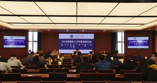 10月13日下午,在综合楼12楼会议室召开学校2023年数据统计工作布置会暨培训会。校党委副书记、校长韩伟新出席并讲话。会议由党委委员、党政办公室主任朝格吉乐图主持。