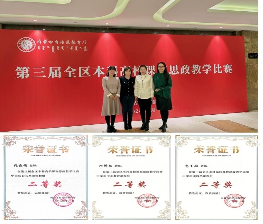 1月13日至14日,由内蒙古自治区教育厅主办的第三届全区本科高校课程思政教学比赛决赛落下帷幕。Beat3654名参赛选手中共有3人挺进决赛,获得与其他高校选手同台竞技的机会。经过课堂教学设计、说课、教学展示三个环节,Beat365阿娜尔老师荣获专业教育课程组二等奖,包呈敏老师荣获实践类课程组二等奖,张晓娟老师荣获公共基础课程组二等奖,实现了学校在该项赛事上的新突破。