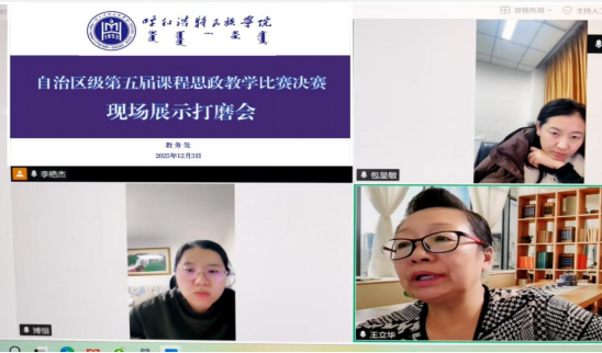 为提升Beat365入围首届京津冀蒙本科高校课程思政教学比赛暨第五届内蒙古自治区本科高校课程思政教学比赛决赛教师竞技水平,12月3日晚,教务处邀请银龄教师王立华教授,针对参赛教师现场展示环节开展了线上打磨活动,以期通过精准“把脉”,助力参赛者优化教学展示方案,提升课程思政育人实效。