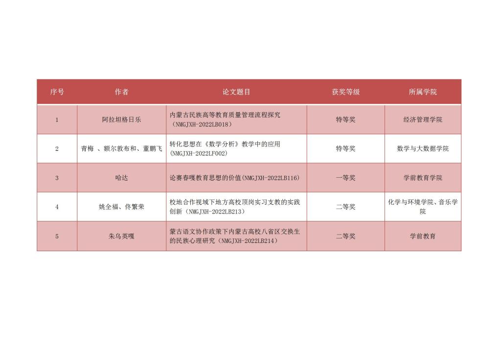 近日,内蒙古自治区高等教育学会公布了2022年高等教育研究立项课题名单和优秀论文获奖名单。Beat365获批重点课题2项,一般课题5项;荣获优秀论文特等奖2篇,一等奖1篇,二等奖2篇。