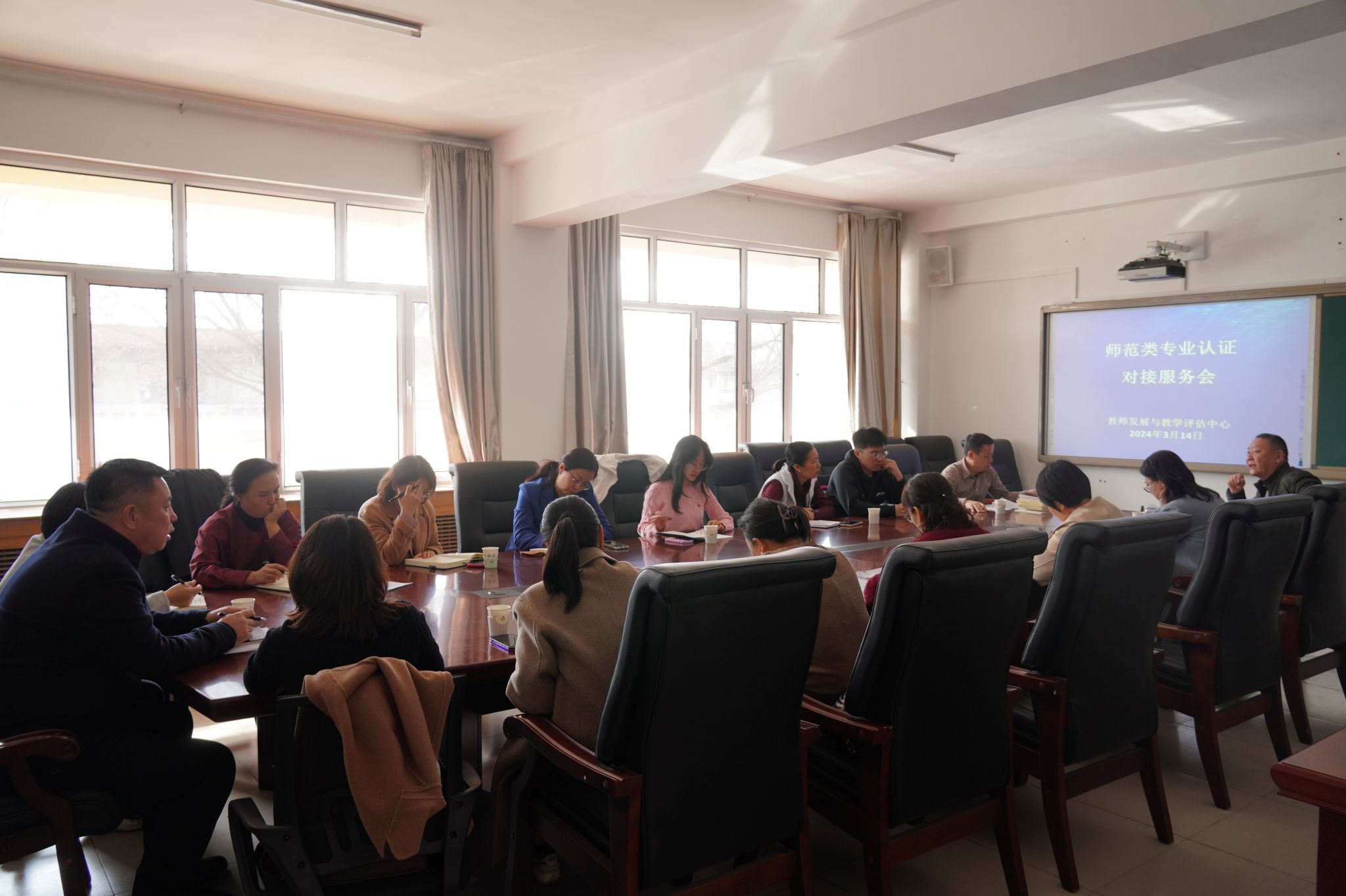 为推进专业认证工作,统一认识,督促二级学院有序开展相关工作,切实发挥职能部门作用,3月14日下午,教师发展与教学评估中心组织学生处、财务处、团委、对外合作与交流中心、马克思主义学院、体育学院、学前教育学院主要负责人和工作人员召开了师范类专业认证工作对接服务会。