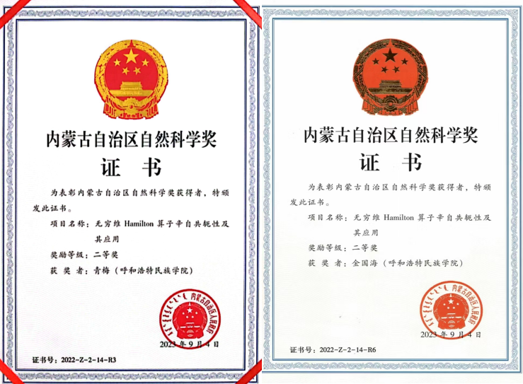 2021年“无穷维哈密顿系统及偏微分方程研究创新人才团队”入选自治区“草原英才”工程产业创新人才团队。2024年数学与大数据学院被学校评为科研工作先进集体。