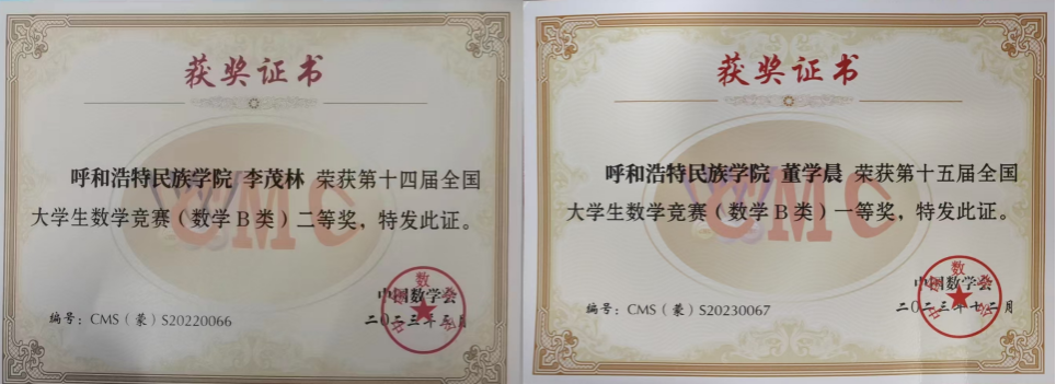 已有35名毕业生考取太原理工大学、内蒙古大学等区内外高校硕士研究生,其中5名学生考取博士研究生。指导学生在参加学科竞赛,在高教社杯全国大学生数学建模竞赛、自治区师范生课堂教学技能大赛等大赛中,累计获得一、二等奖等各类奖项100多人次。