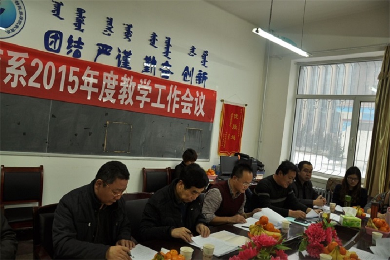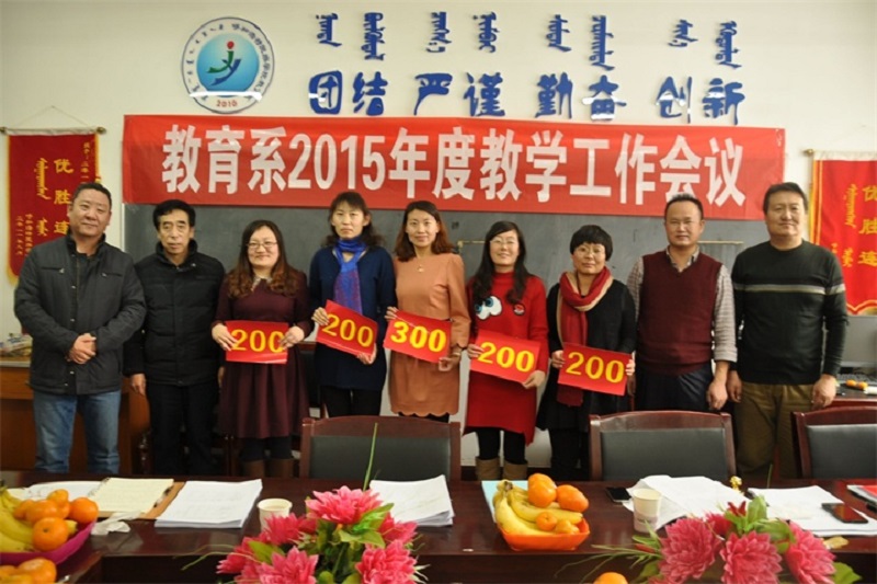 会议由王福清书记主持。首先由刘根岁主任作了2015年度教育系教学工作总结。刘主任对本年度教学工作中取得的成绩,如教学质量的提高、新进教师的培养、人才培养方案和教学大纲的修订等工作给予肯定,同时也指出全年工作中的不足,提出了新的改进和发展的方向。之后,在会上提交论文的教师介绍了自己撰写的论文,并且就其中的教学改革、民族教育等问题进行了交流和讨论。接着,对近两年在教研科研上获得成果的教师进行了颁奖和表彰,朝鲁、石翠红等教师获得奖励。最后,王福清书记对本次会议进行了总结,肯定了教育系本年度所取得的成绩,认为教育系的教学科研等工作逐步正规化和系统化,教师素质不断增强,教学质量和就业率稳步提高;同时也对教育系今后的工作提出了更高更严格的目标和标准,并就未来一年的具体工作进行了初步规划。