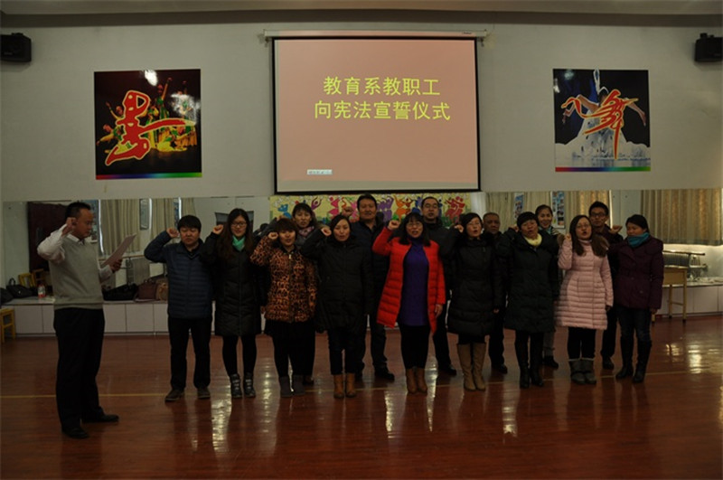 活动中,首先由党总支书记王福清向全体教职工宣讲了宪法所确立的国家根本制度、根本任务、基本原则、活动准则,并组织教职工向宪法宣誓仪式。