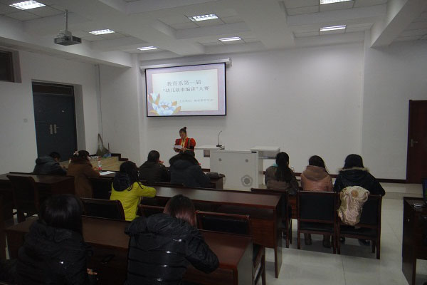 2012年11月17日晚上7点,在新教学楼106多媒体教室,教育系团总支组织全系学生举办了教育系第一届“幼儿故事编讲”大赛。比赛邀请了院团委书记阿古拉老师、就业指导中心副主任那日苏老师、教育系朝鲁副教授、团总支书记胡宝泉老师和音乐系郝玉红老师担当评委。