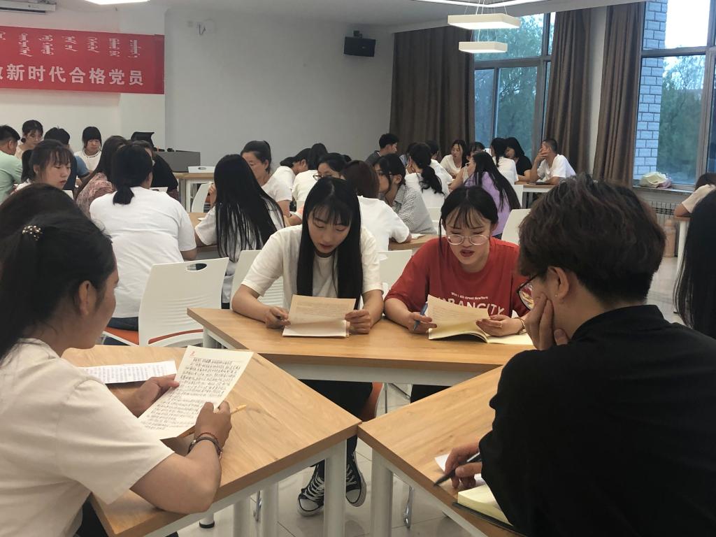 会上,首先由安梅琴老师讲话,她要求现场每个人积极参与交流研讨,推动交流研讨往深里走、往心里走、往实里走。随后,安梅琴老师把全体党员、预备党员、发展对象和积极分子分成了七个小组,先开展组内交流探讨,再由每个小组各派代表上台分享学习思考和心得体会。最后,许晓芳老师作了总结,她既肯定了本次交流研讨的必要性,又提出了作为新时代中国特色社会主义的建设者和接班人,需要每个党员读原著、学原文、悟原理,在学懂弄通做实上下功夫,要不断增强“四个意识”、坚定“四个自信”、做到“两个维护”,坚定不移听党话、跟党走。